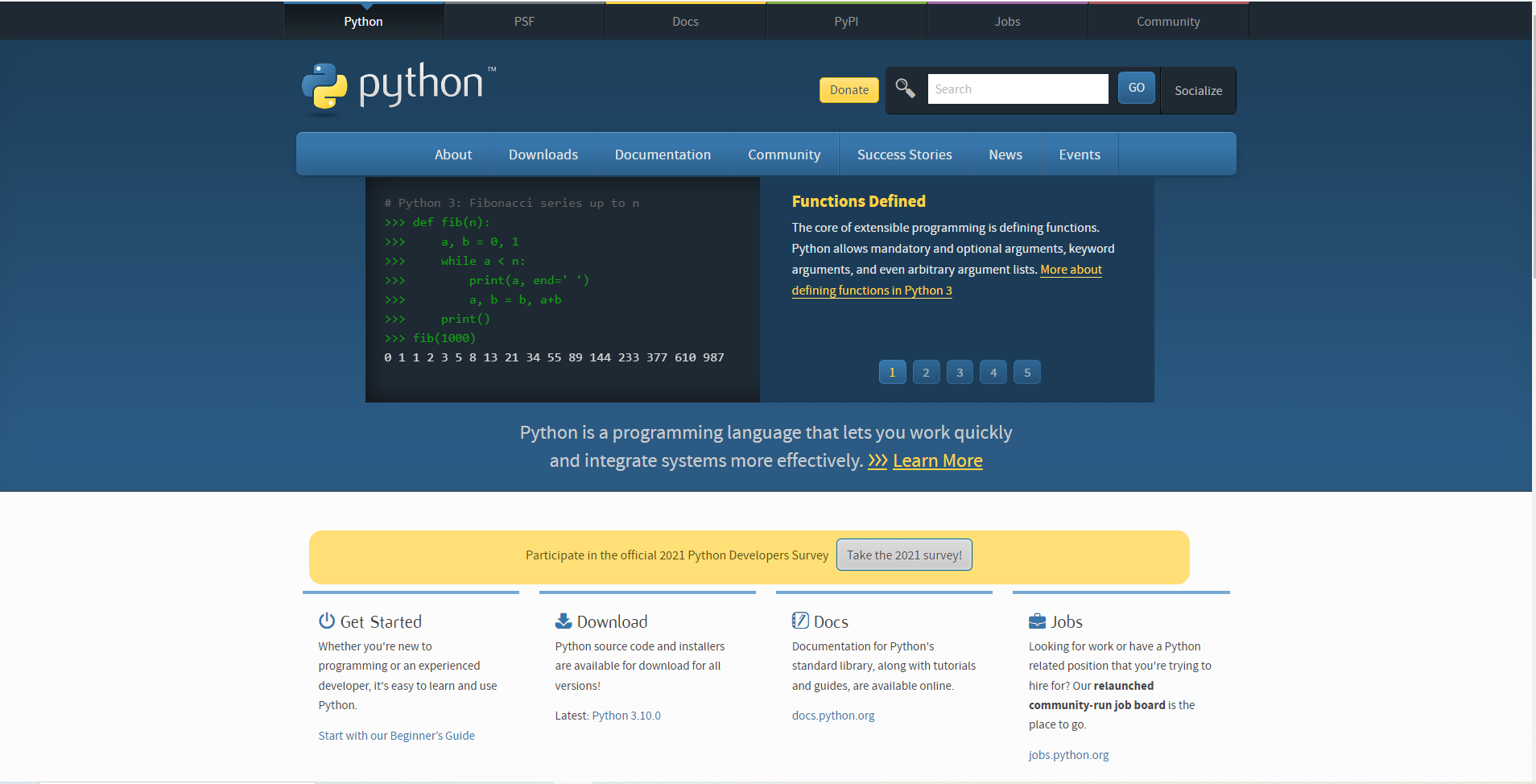 - 위의 url로 접속해줍니다. 그럼 파이썬 메인화면이 바로 노출됩니다.