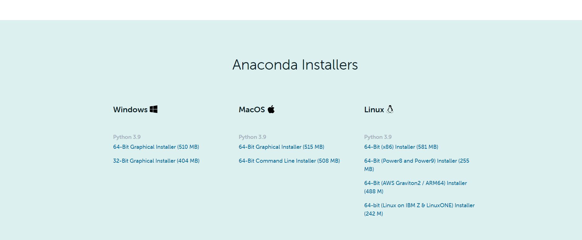 - 아나콘다 다운로드 페이지로 들어가면 바로 다운로드가 가능합니다.