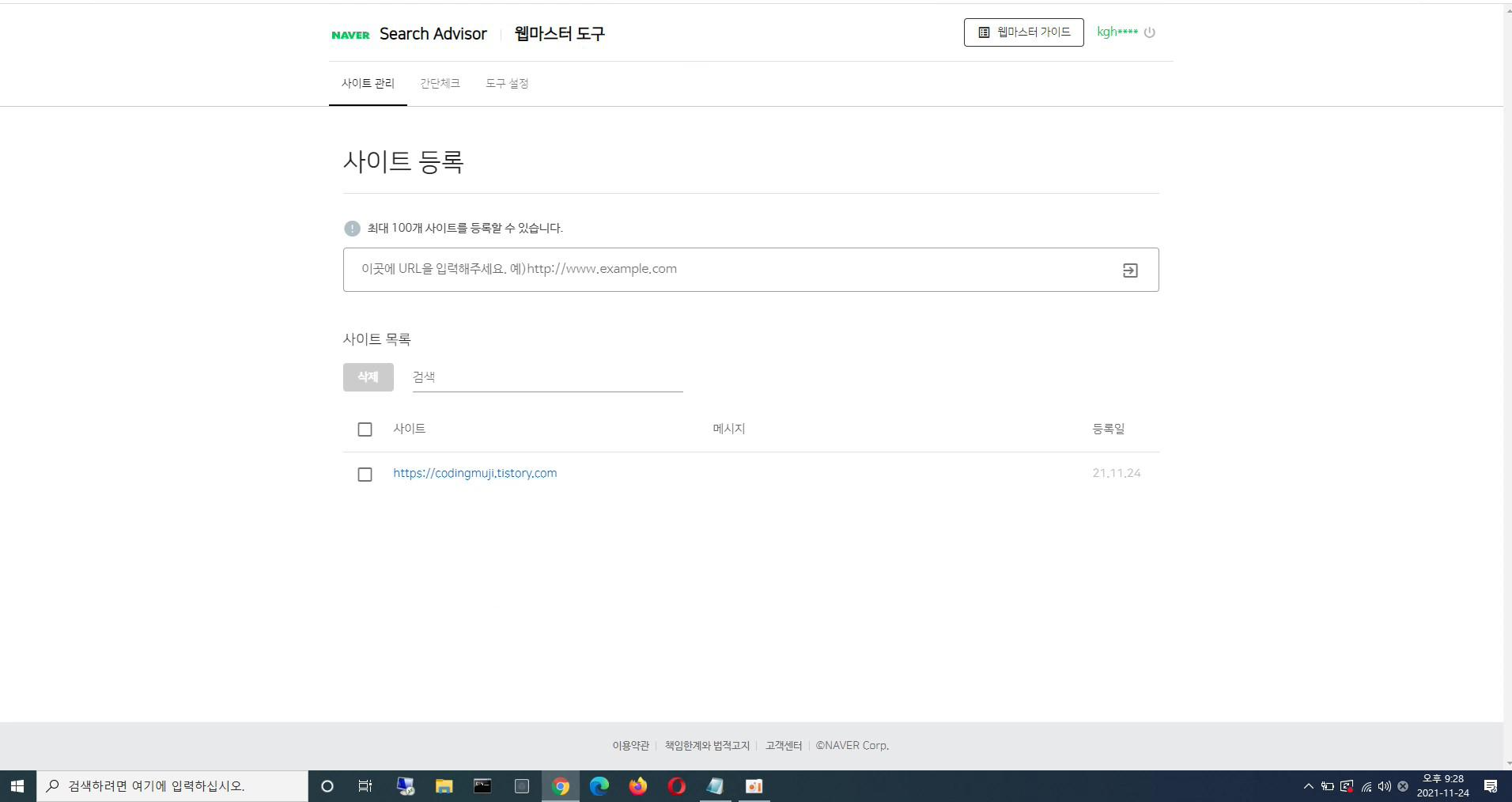 - [웹마스터 도구]에 접속하면 사이트 등록 화면이 보입니다!